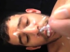 Gay guy gets face andmouth cum sprayed