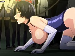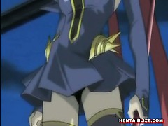 Tied up anime babe gets holes banged